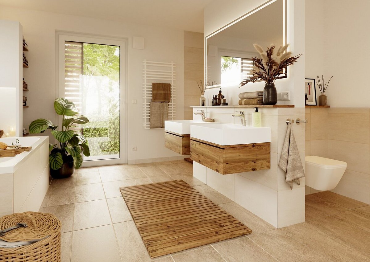 Der Bungalow 100 Novo – rund 100 m² Wohnkomfort, moderne Optik und clevere Highlights wie überdachte Terrasse, Gründach, Photovoltaik und Design-Extras. Jetzt anfragen und dein Traumhaus entdecken!