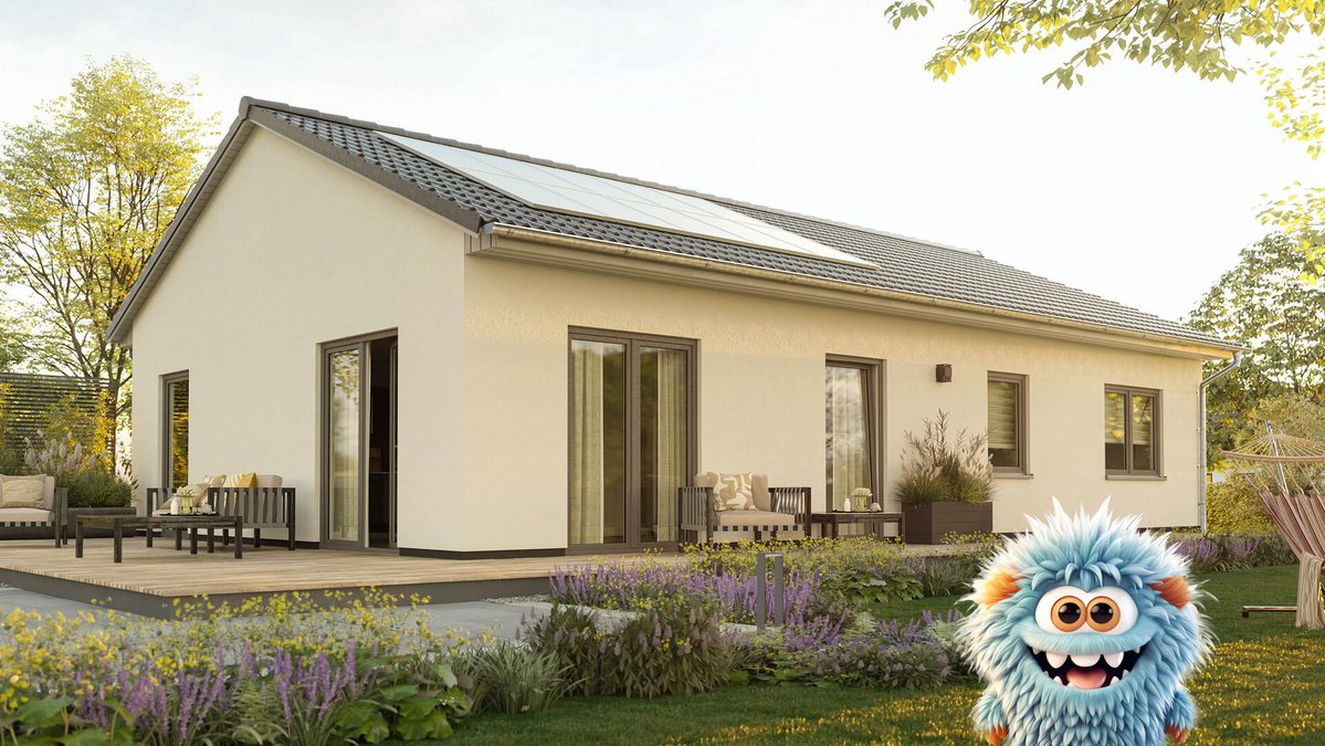 Alles auf einer Ebene – nichts Neues für einen Bungalow. Doch dieser von Town & Country Haus hat es wortwörtlich in sich, da ist sich auch der Ratenfresser Joki sicher.