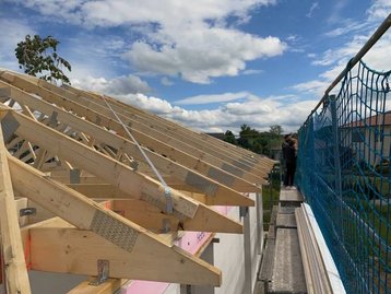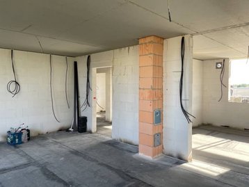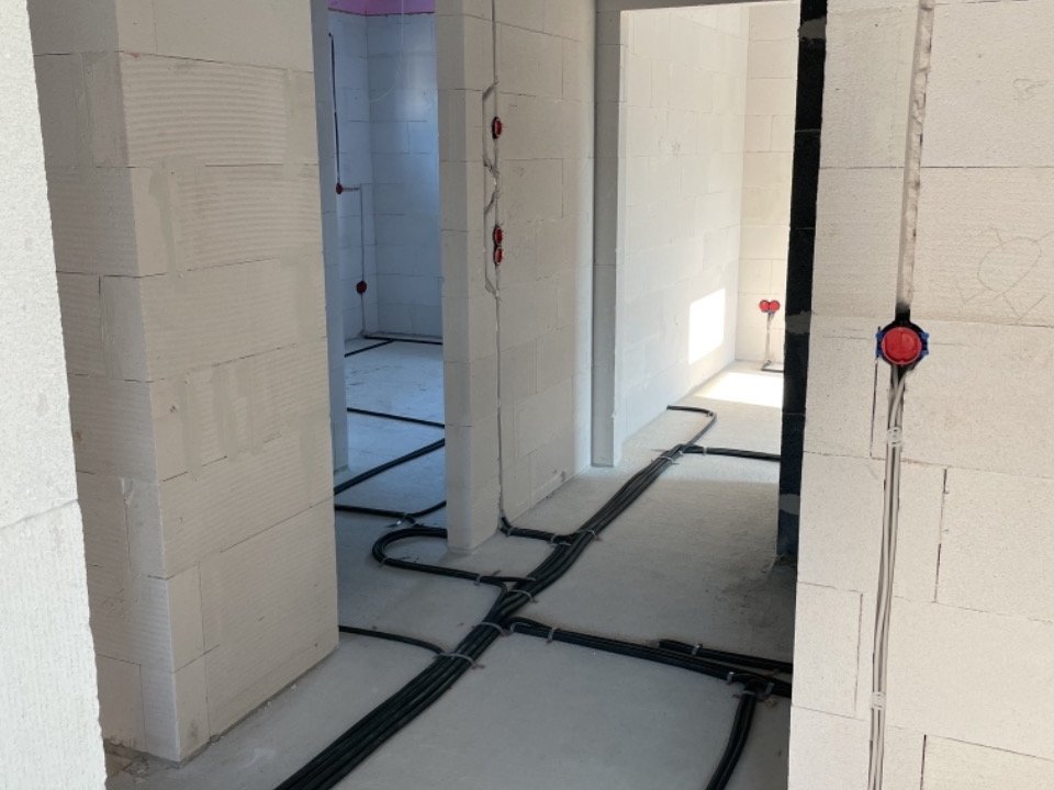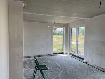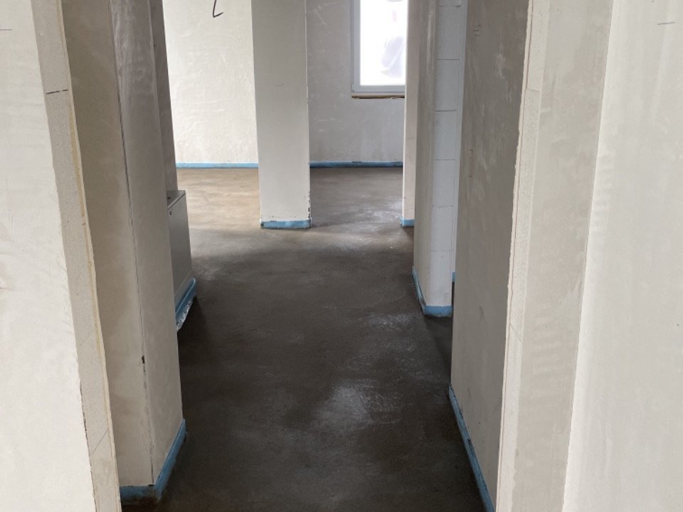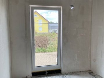 Auch das Obergeschoss zeigt sich im gradlinigen Baustil des Hauses. Hier finden Sie drei Zimmer, die Sie nach Ihren Vorstellungen als Schlaf-, Kinder- oder Gästezimmer nutzen können. Große Fenster lassen auch hier viel Tageslicht hineinströmen. Die Ankleide im Schlafzimmer bietet viel Stauraum.
