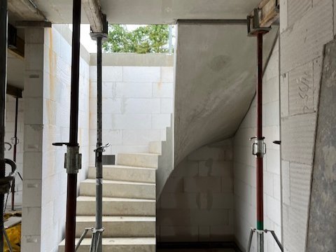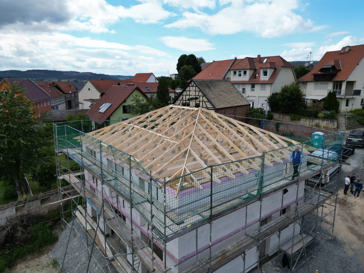 Die Bodenplatte wurde gegossen, die Maurerarbeiten für das 1. Geschoss begannen und schon Mitte Juni wurde zünftig Richtfest gefeiert und der Fortschritt ließ sich Revue passieren.