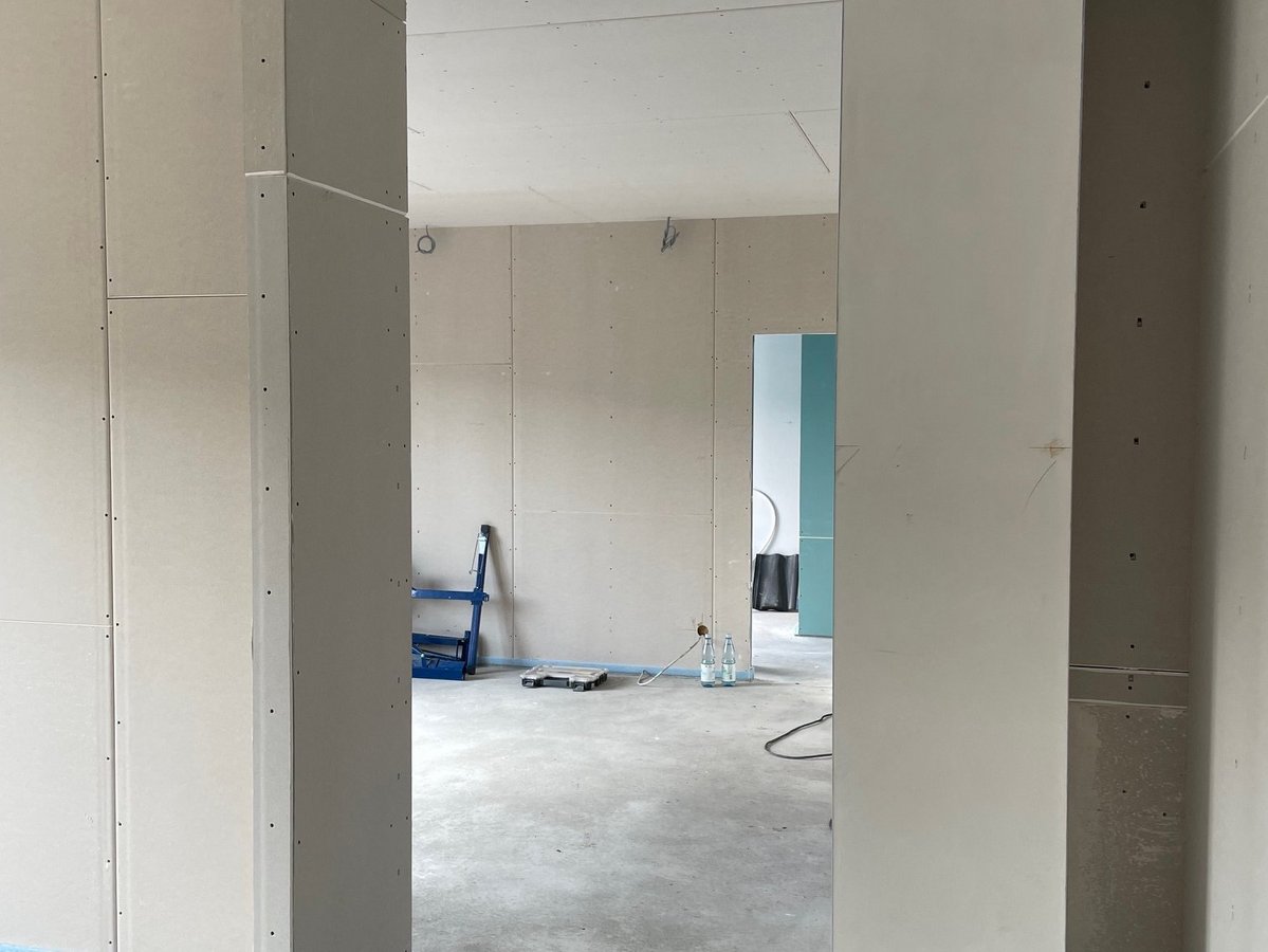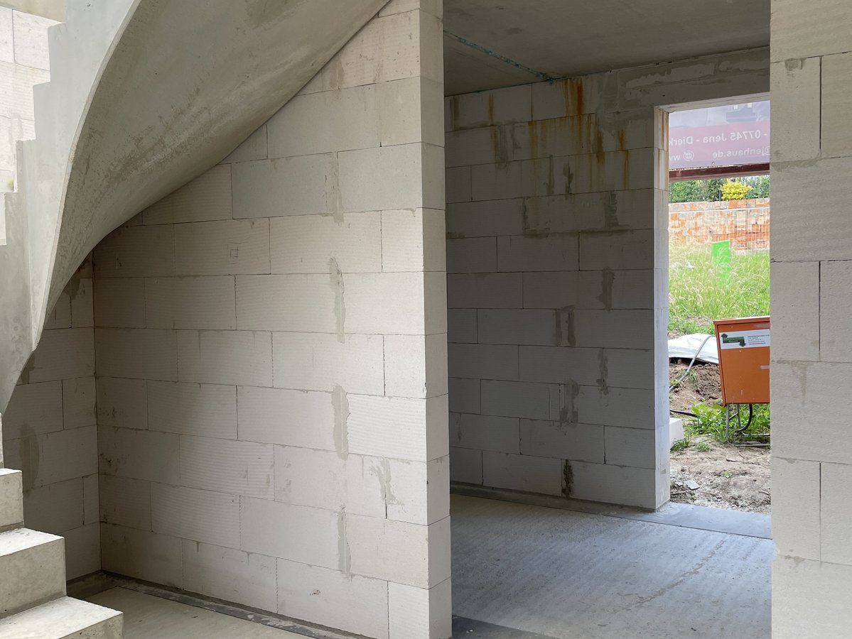14 Tage später waren die Fenster eingebaut und das Dach fertig gestellt, wodurch die nun folgenden Innenausbauarbeiten nicht mehr abhängig von äußeren Witterungseinflüssen waren.