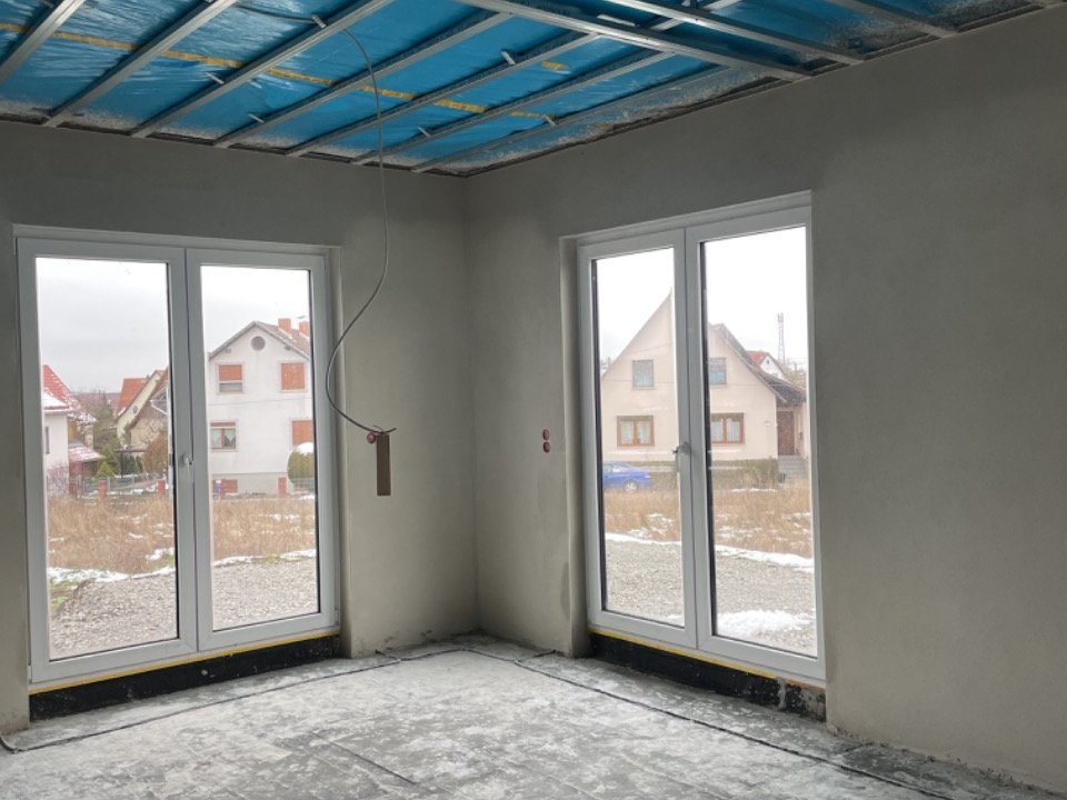 Der offen gestaltete Wohn-, Koch- und Essbereich ist das Zentrum des Familienlebens. Hier wird gemeinsam gekocht, gelacht und entspannt. Die bodentiefen Fenster lassen nicht nur viel Licht hinein, sondern ermöglichen auch vielfältige Zugänge zum Garten. Ob von der Küche oder vom Sofa aus, Ihre Wohlfühloase im Grünen ist stets nur ein paar Schritte entfernt. Besonders praktisch und platzsparend ist die integrierte Garderobe im Flur. Außerdem gibt es verschiedene Wohnbereiche, die auf Wunsch mit (Glas-)Türen abgetrennt werden können.