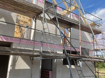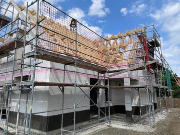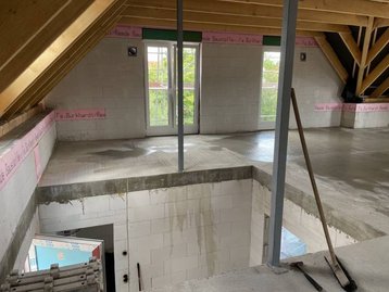 Im Erdgeschoss ist genügend Platz für ein großes Wohn- und Schlafzimmer sowie für ein Kinder- und Gästezimmer. Vom Wohnzimmer aus haben Sie durch die bodentiefen Fenster einen wunderschönen Blick in Ihren Garten. Diesen können Sie auch von Ihrem Schlaf- und Gästezimmer direkt begehen. Besonders reizvoll auf Ihrem Weg ins Freie ist dabei der überdachte Winkel zwischen Wohn- und Gästezimmer.