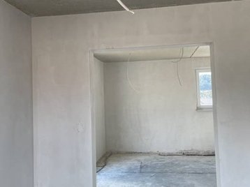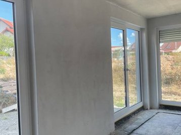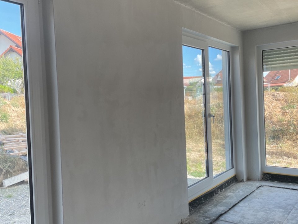 Auch das Obergeschoss zeigt sich im gradlinigen Baustil des Hauses. Hier finden Sie drei Zimmer, die Sie nach Ihren Vorstellungen als Schlaf-, Kinder- oder Gästezimmer nutzen können. Große Fenster lassen auch hier viel Tageslicht hineinströmen. Die Ankleide im Schlafzimmer bietet viel Stauraum.